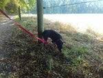 Heute hätte sie fast eine Taube gefangen; sie ist halt ein Jagdhund.