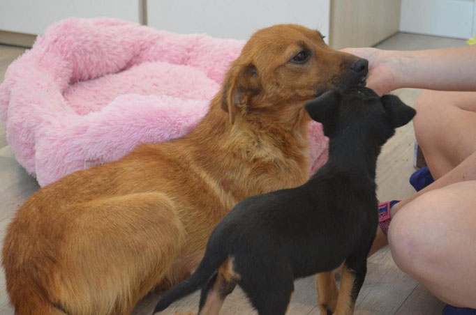 Die kleine Lia konnten wir gemeinsam mit ihrem Hundekind Laia aus der Tötungsanlage von Burgos abholen und in Pension unterbringen lassen.
