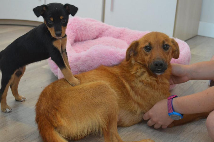 So haben die zwei mit einem kurzen Zwischenstopp bei unserer Tierfreundin Sara den ersten großen Schrecken verwinden können und leben sich gerade hinter neuen Zwingergittern in der Pension ein.